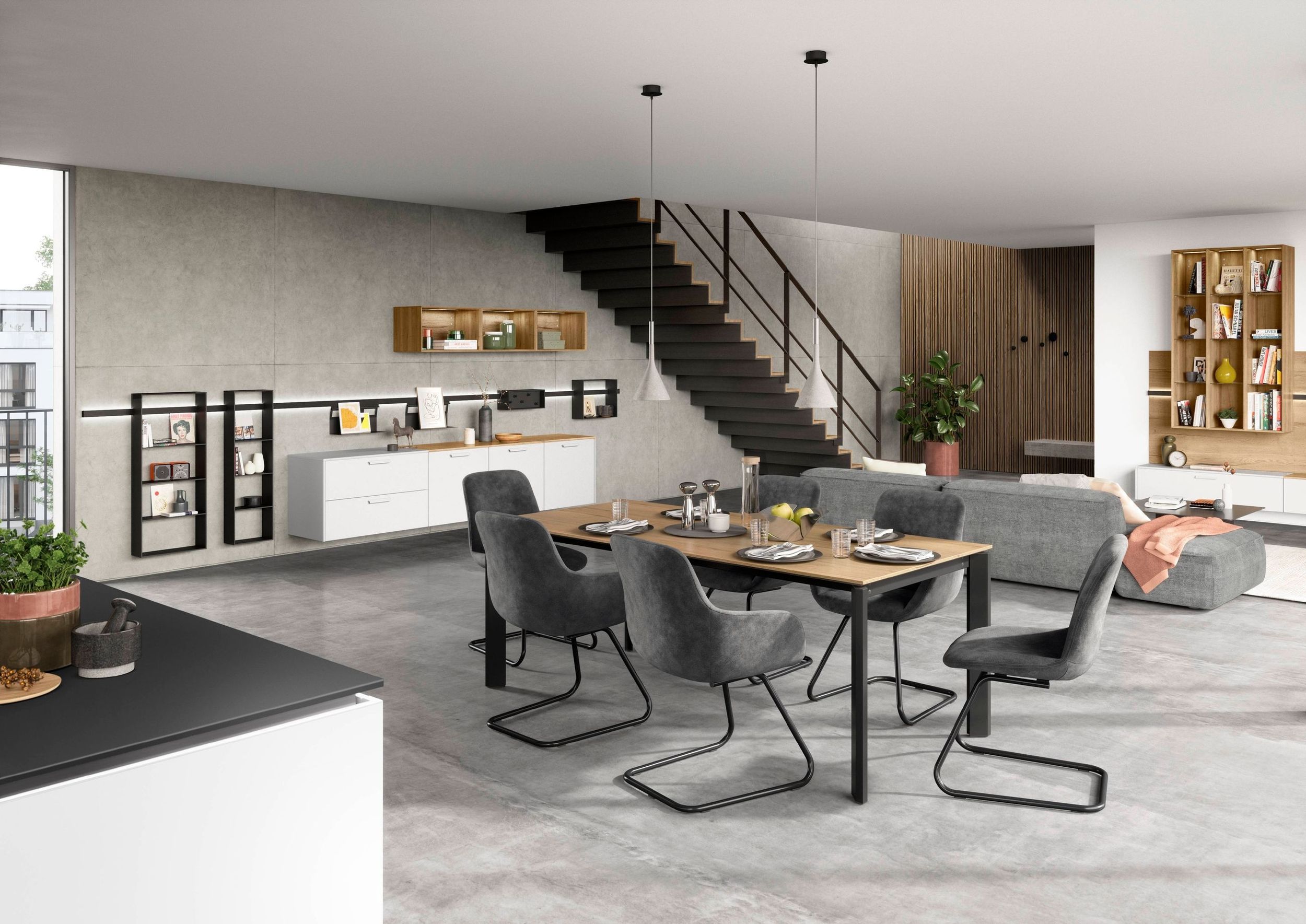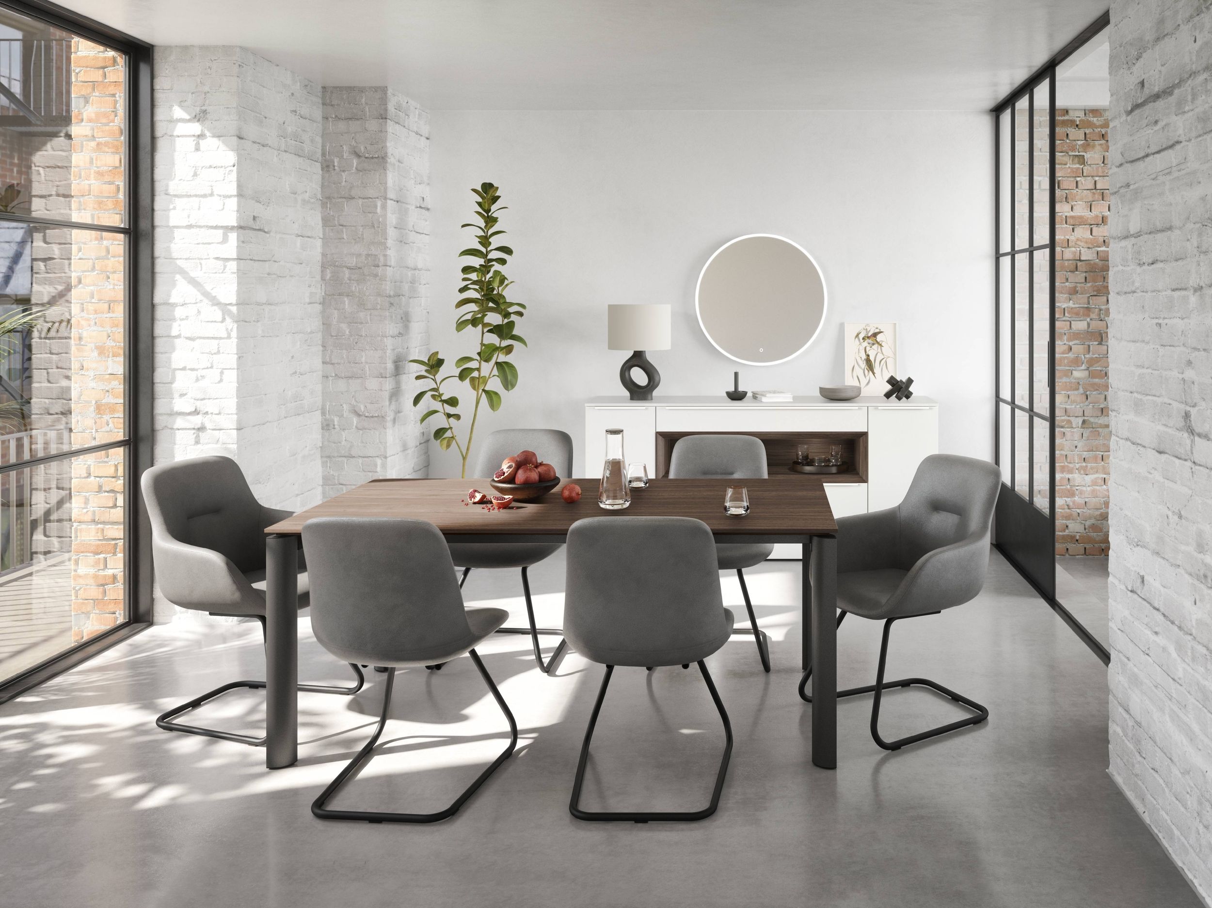Der Essplatz ist weit mehr als nur ein Tisch mit Stühlen – er ist ein Ort für Gespräche, Genuss und gemeinsame Momente. Elegant im Design, einladend in der Ausstrahlung, wird er zum Mittelpunkt des Wohnens.